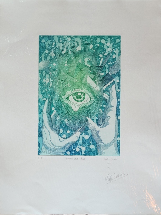 Avec Corynne Sculfort, Présidente de l'Amicale, et Pierre Sacovy, nous avons eu droit à des explications précises et abondantes sur le travail artistique de ce collectif Mais, malgré les compétences techniques et pédagogiques d'Aurore Nardot, alias Miss Nardotte, je serais incapable de commenter la complexité des œuvres ci-dessous Pour cela, adressez-vous aux deux artistes qui m'accompagnaient ou à Aurore elle-même...