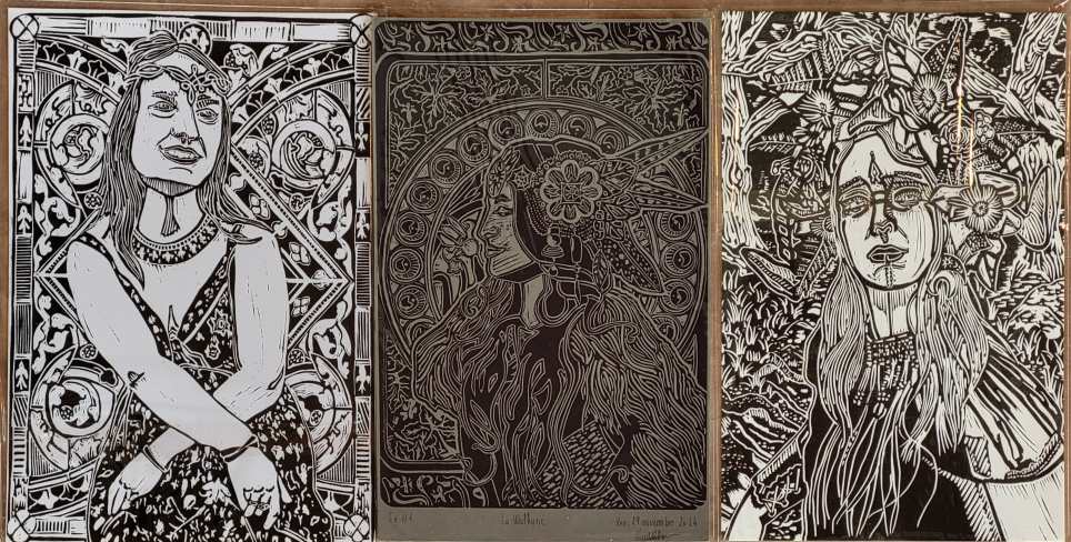Aurore Nardot,Yggdrasil, l'arbre des mondes, Linogravure, 100*80