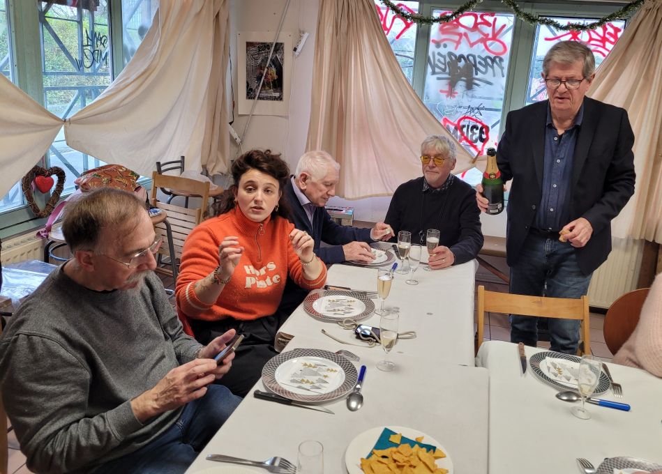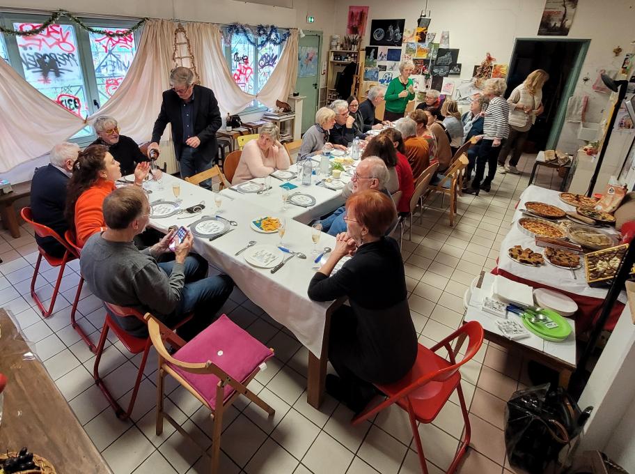 Les 24 convives sont attablés, Gérald Desplancques ayant pris le relais pour les bulles