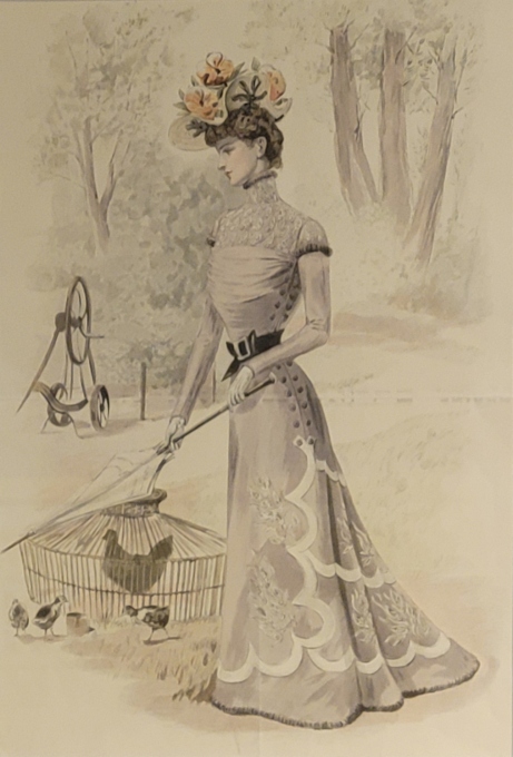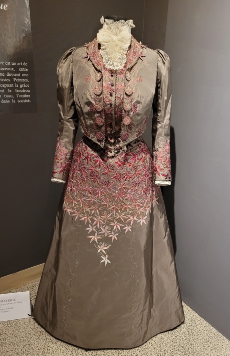 SPIRALES, Inspiré d'une tenue de ville vers 1895, Soierie beurre frais brodée au fil