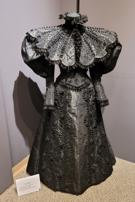 VISITE, inspiré par une toilette de promenade vers 1895, Soieries noires brodées de noir