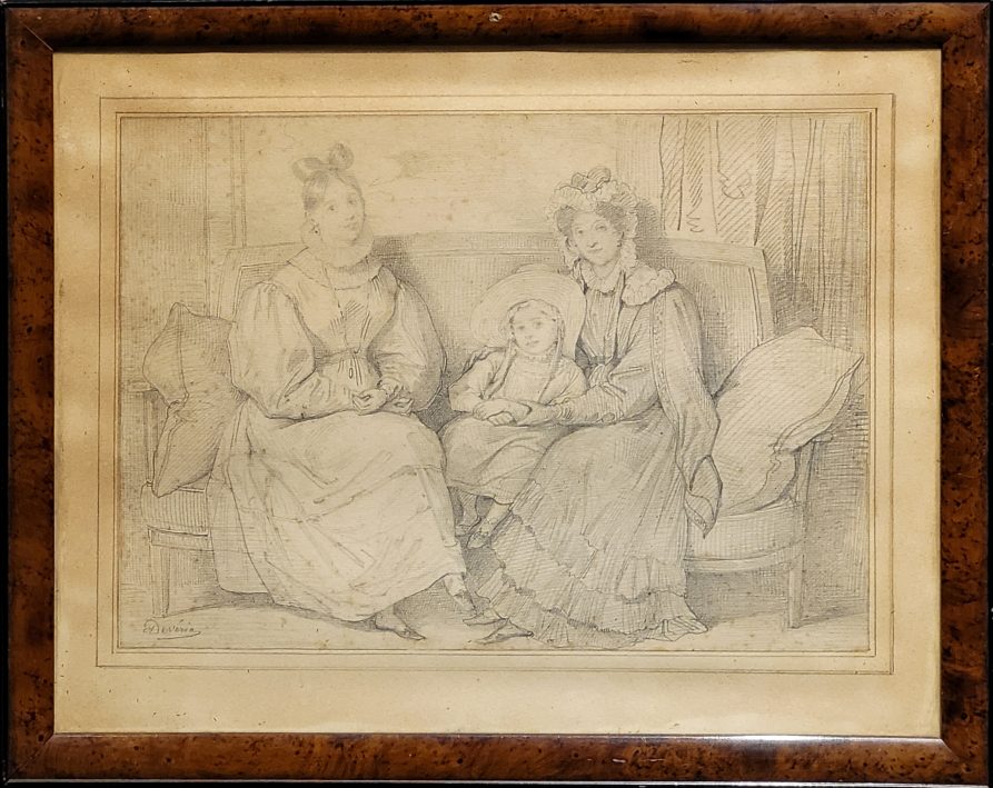Eugène DÉVÉRIA (1805-1865), Deux femmes et un enfant, Crayon