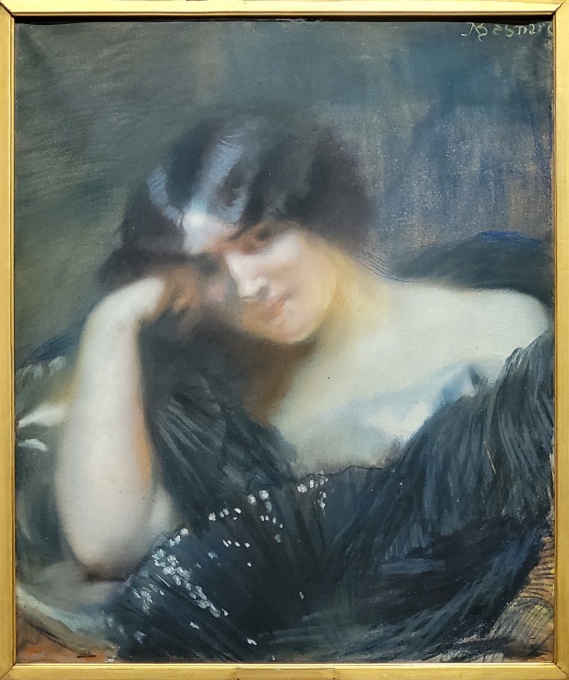 Albert BESNARD (1849-1934), Portrait de femme à l'éventail (Charlotte Besnard), Pastel