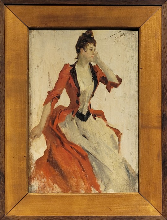 Louis BESNARD (attribué à) (1873-1962), La femme au chapeau vert, Huile sur papier, Non daté