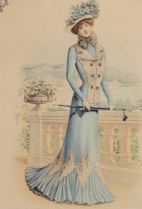 APRÈS-MIDI, Inspiré par une toilette d'après-midi vers 1880, Fleurs brodées sur taffetas ciel