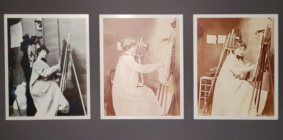 Femmes peintres à l'atelier, de gauche à droite : Virginie SGOUTA, Cécile HERTZ et Edith ?, Auteur inconnu, Vers 1898