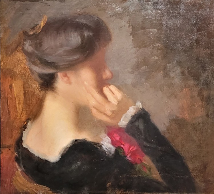Eugène CARRIÈRE (1849-1906), Jeune fille aux yeux clos, Huile sur toile, Vers 1878