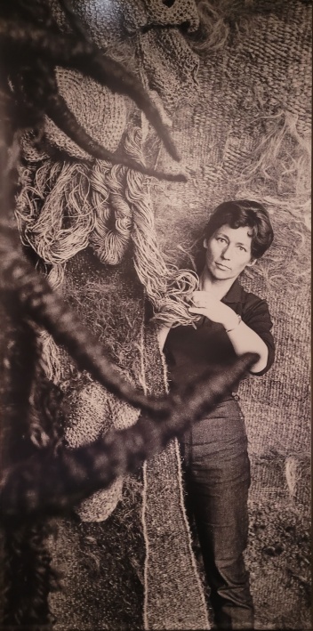 Magdalena Abakanowicz (1930-2017) est une artiste polonaise qui a étudié la peinture et le textile à l'Académie des beaux-arts de Varsovie et a rapidement acquis une renommée internationale. Sa conception de la tapisserie la porte à en faire une oeuvre sculpturale et non uniquement murale : "Je ne m'intéresse pas au tissage [..] sous ses formes traditionnelles, ni à son usage professionnel, ni à ses significations restreintes. Je ne m'intéresse aux techniques de tissage que dans la mesure où elles servent mon processus créatif. J'ai découvert un matériau et une technique que je peux utiliser pour donner forme aux choses et concrétiser mes idées."