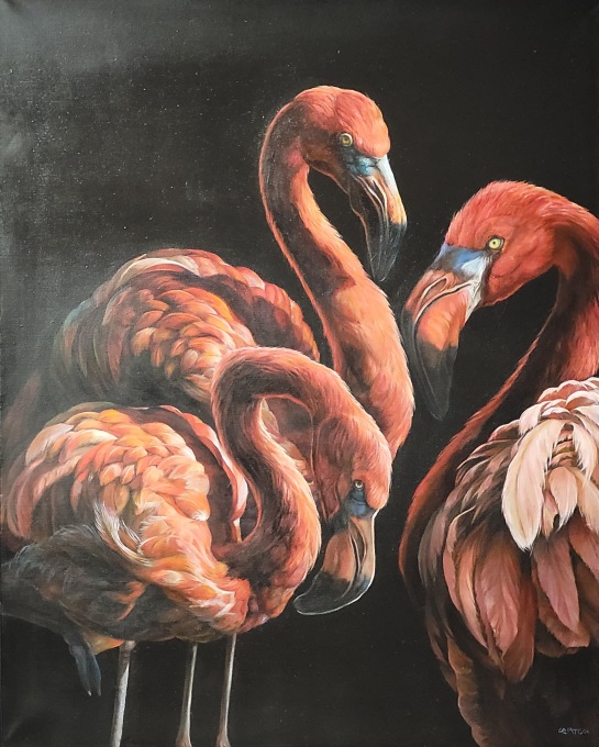 CAPTON, Prix Roger B. BARON de la ville de Bry-sur-Marne, Trois flamants, Huile sur toile de lin