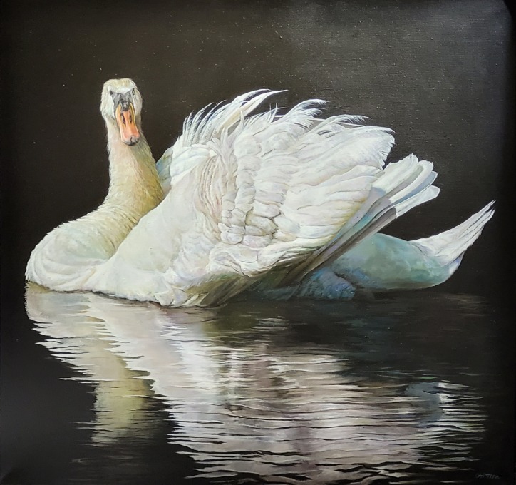 CAPTON, Troies oies blanches, Huile sur toile de lin
