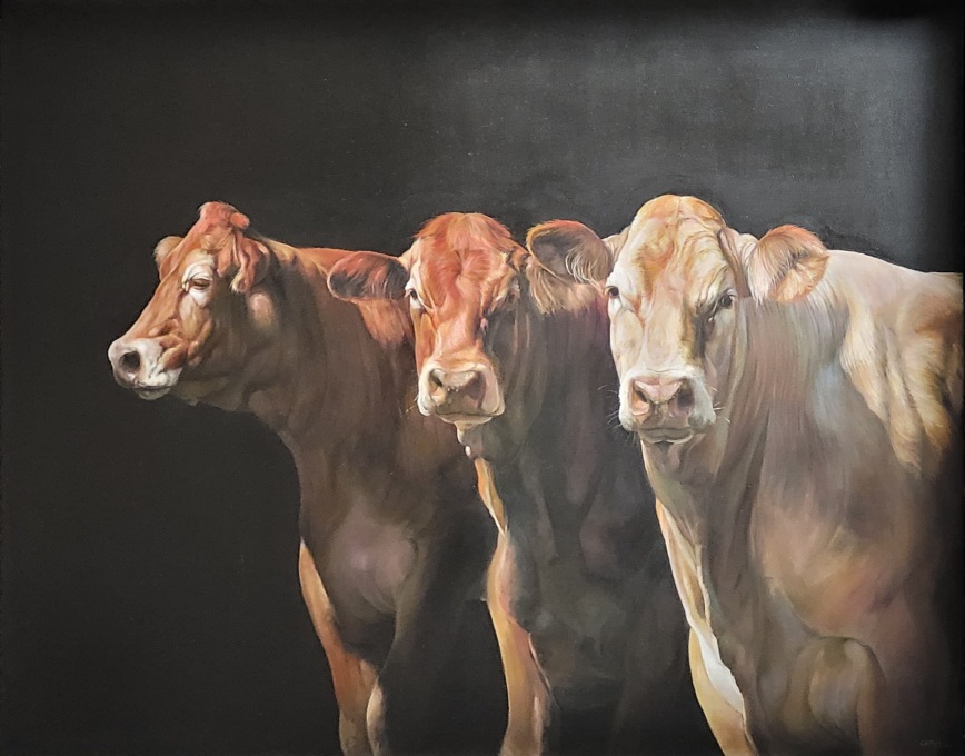 CAPTON, Charolaise de face, Huile sur toile de lin