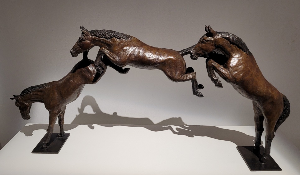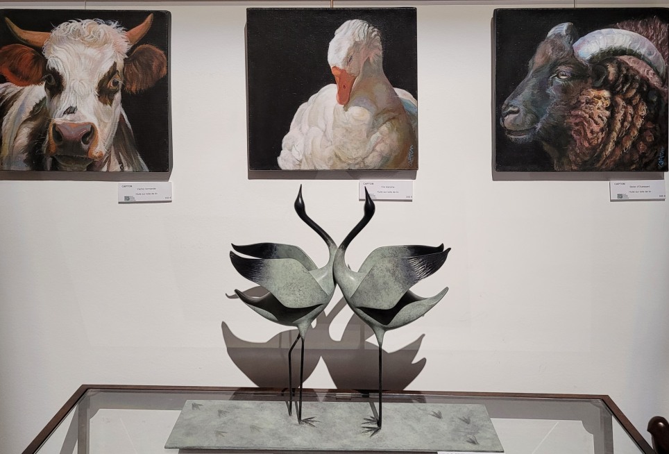 CAPTON, Vache normande, Oie blanche et Bélier d'Ouessant, Huile sur toile de lin et au 1er plan : Isabelle BRIZZI, Grandes grues japonaises, Bronze