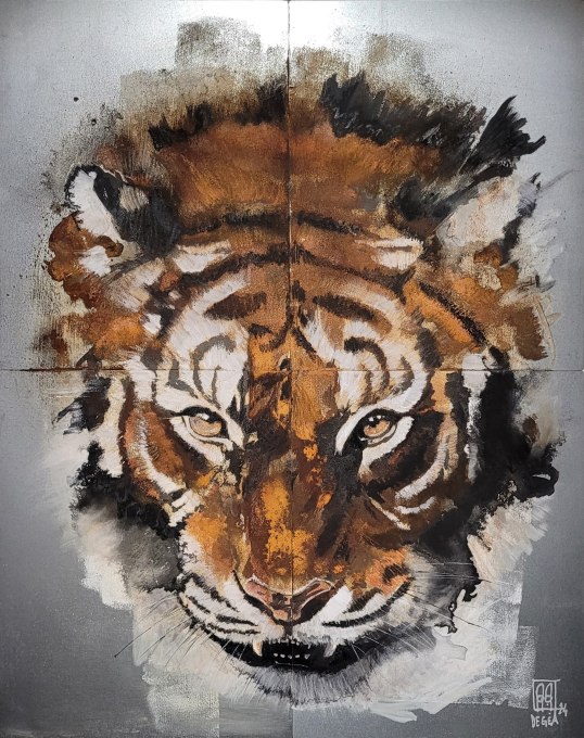 Olivier DE GÉA, Le tigre, Plaques d'acier galvanisées et rouille