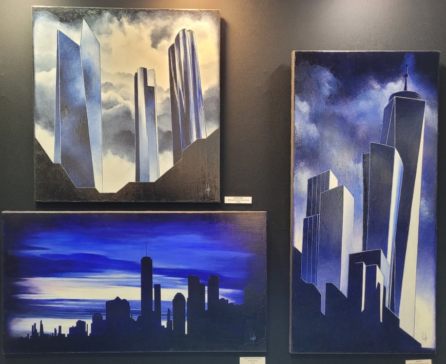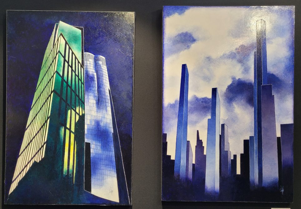 Bernard VOILLOT, Hudson Yards, Huile sur toile de lin, 70*70 Skyline, Huile sur toile de lin, 50*100, et CNI World, 55*110