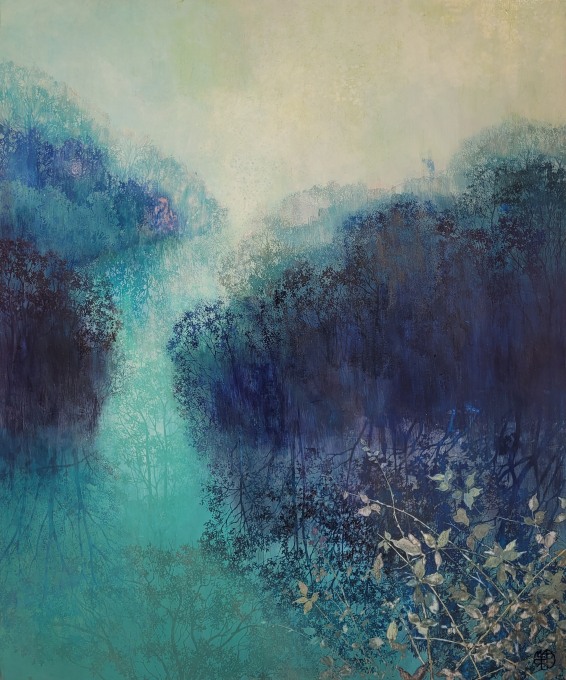 MARTY-REY, Vallée des Songes, Pigments vernis marin sur bois, 70*86, Prix BOESNER