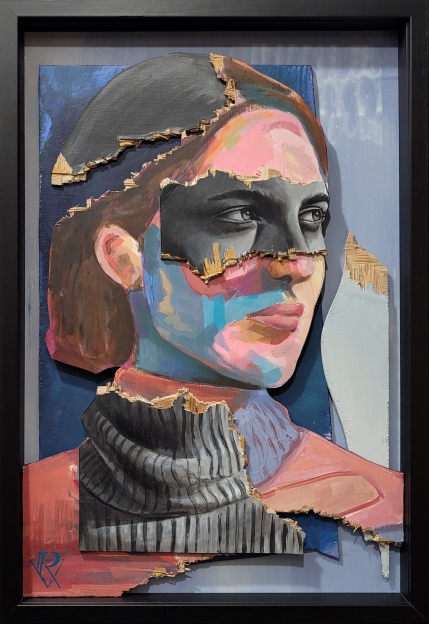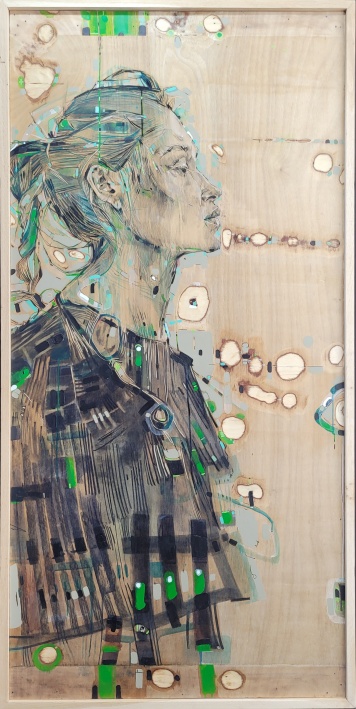 Damien DEMAITER, Félicia, Acrylique, aérosol, encre et techniques mixtes sur châssis bois pro toilé lin, 120*90 non encadré, encadrement caisse américaine