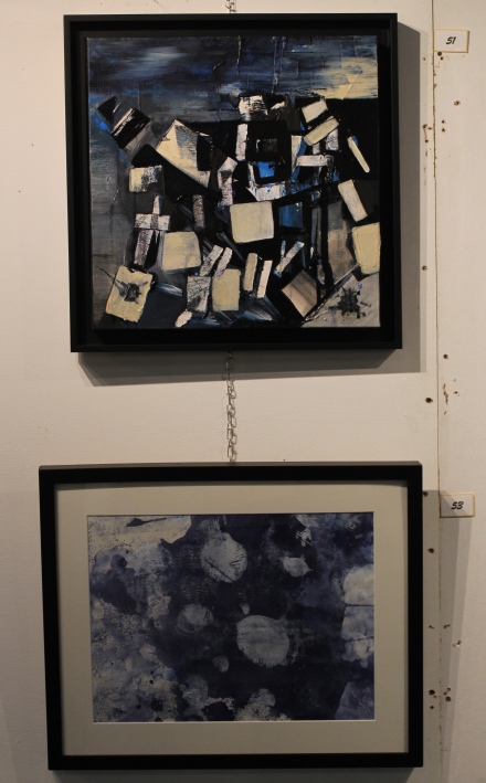 Isabelle FERRE, Bleus, Acrylique sur toile, et Les bleus d'encre, Encre, papier de soie
