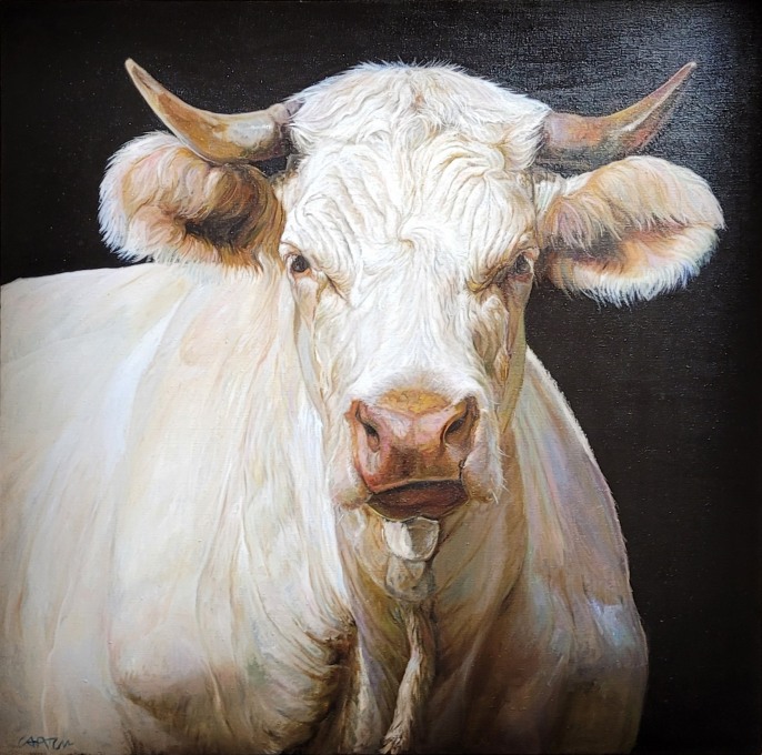 CAPTON, Charolaise de face, Huile sur toile de lin