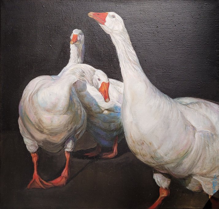 CAPTON, Troies oies blanches, Huile sur toile de lin