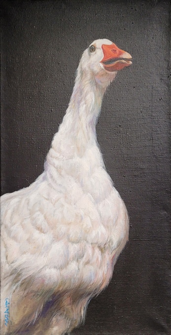 CAPTON, Baudet du Poitou et Oie blanche, Huile sur toile de lin