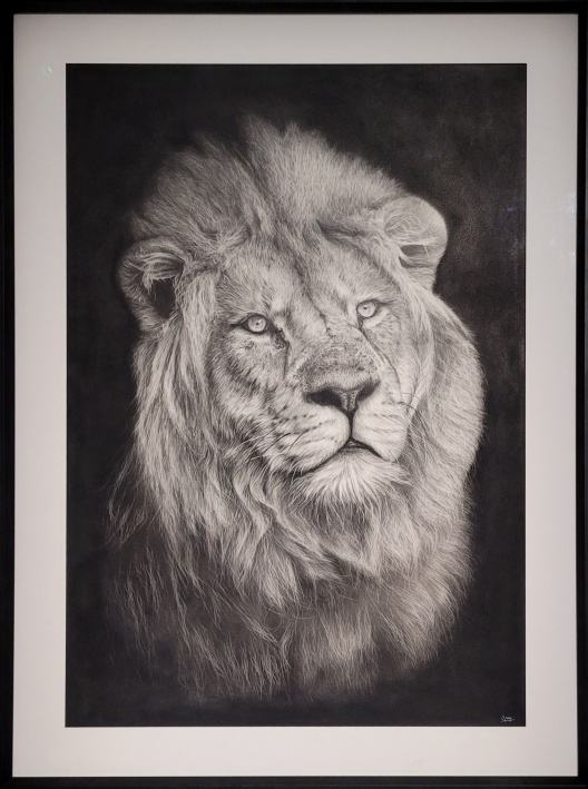 Magali LAPEYRE-MIRANDE, Le Roi Lion, Crayons graphite et carbone sur papier
