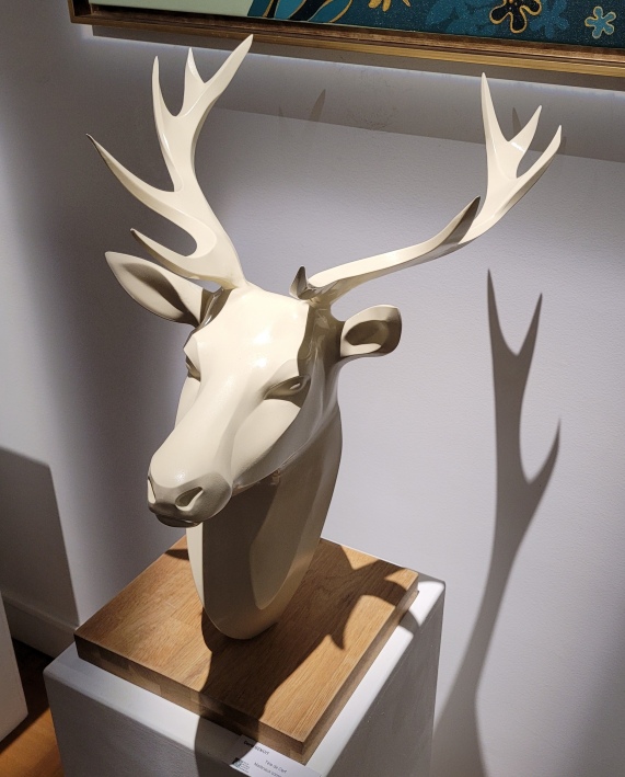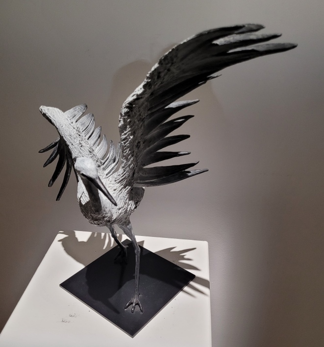 CAPTON, Vache normande, Oie blanche et Bélier d'Ouessant, Huile sur toile de lin et au 1er plan : Isabelle BRIZZI, Grandes grues japonaises, Bronze