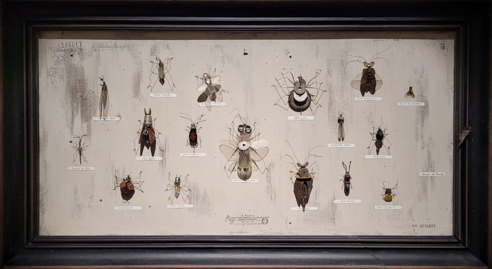 Sylvia DEFER, Bestiaire de Mécanoptères, Découpage, collage, peinture, assemblage