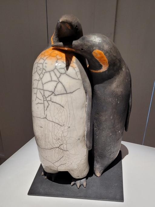Frédérique DELCOURT, Pingouins câlins, Céramique Raku ... Retour en haut de la page... Suite du reportage (<== Cliquez) ... A revoir...