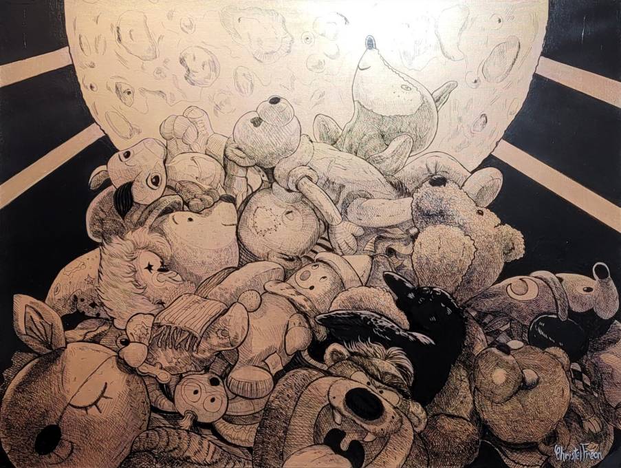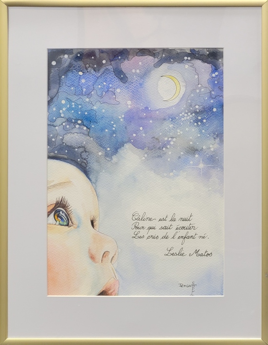 Christel FRÉON, Ode à la lune, Techniques mixtes sur châssis toilé, 60*80