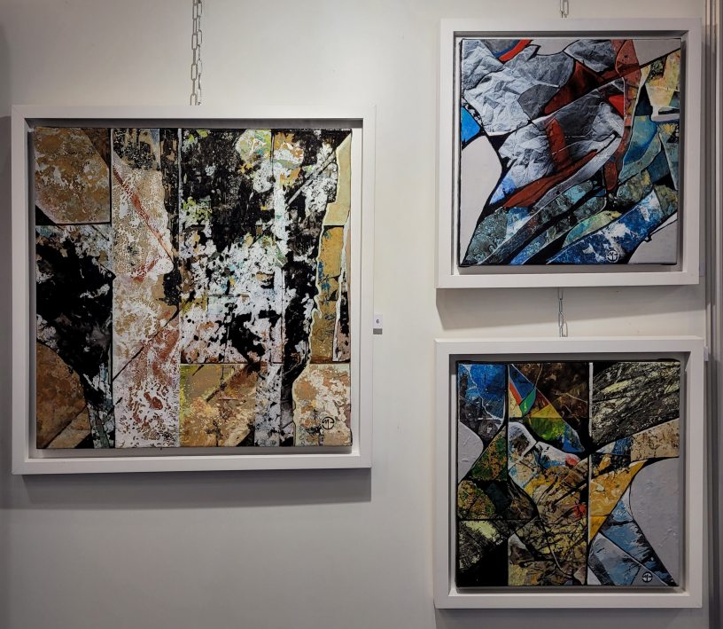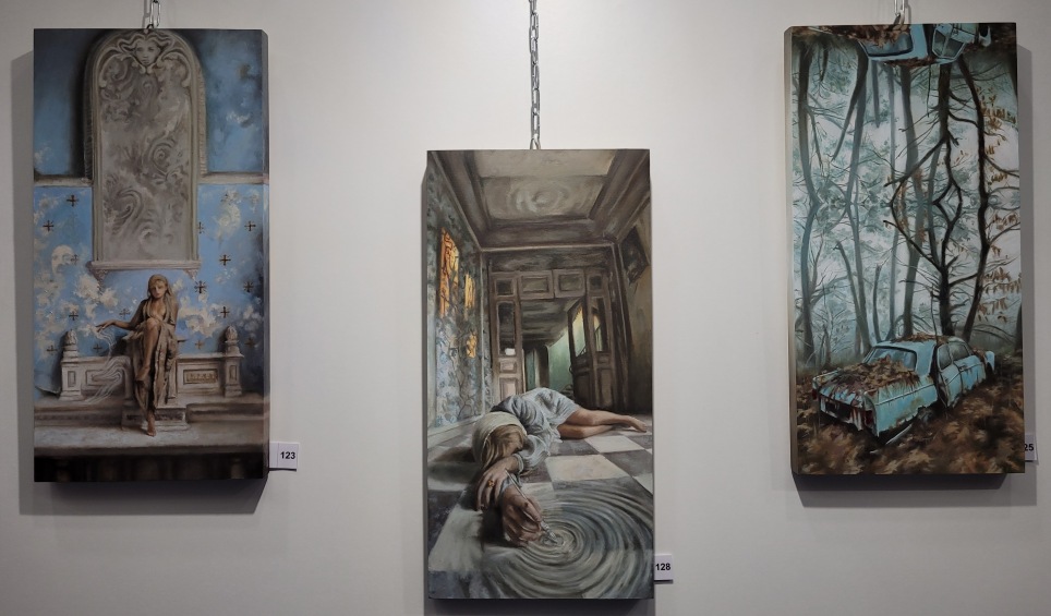 Elise MAQUÈRE, La sortie des limbes, Le calme avant la tempête et Dame blanche, Huiles sur bois