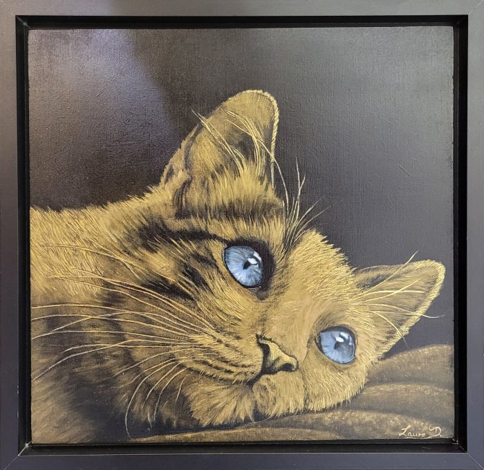 Laure DÈCLE, De noir et d'or : le chat, Huile sur toile