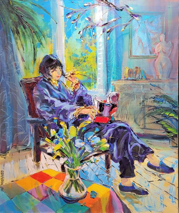Philippe CONVAIN, La liseuse aux bijoux, Huile