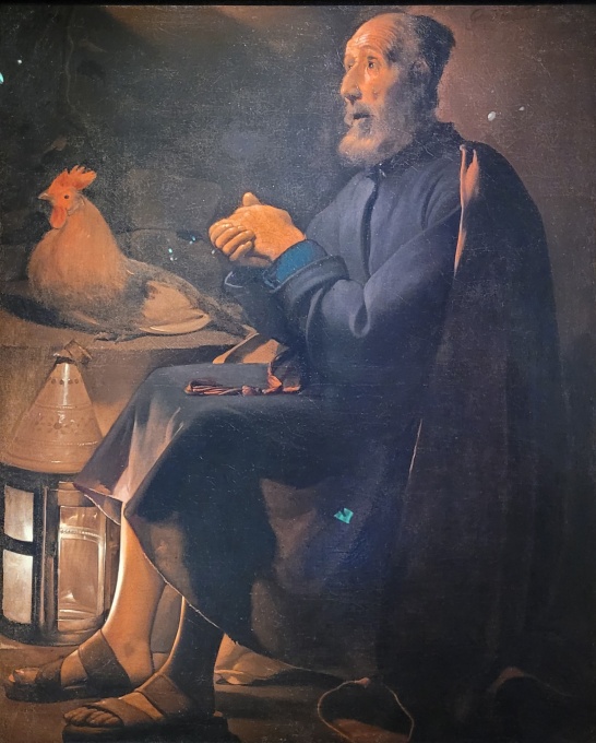 Georges De La Tour, Saint Jacques le Majeur, Huile sur toile, Vers 1620 Georges De La Tour, Saint Philippe, Huile sur toile, Vers 1620 (Plusieurs portraits de saints proviennent d'une commande inconnue reçue par l'artiste au début de sa carrière : un "apostolado", ensemble de treize toiles représentant le Christ et les douze apôtres, série conservée autrefois à la cathédrale d'Albi et dispersée à la Révolution ; six portraits d'apôtres originaux subsistent, certains récemment redécouverts) Georges De La Tour, Saint Thomas, Huile sur toile, Vers 1636 Georges De La Tour, Saint Jacques le Mineur, Huile sur toile, Vers 1620 Georges De La Tour (ou d'après ?), Saint Grégoire, Huile sur toile, Vers 1630 Atelier de Georges De La Tour, Saint Jacques le Majeur, Huile sur toile, Vers 1640-1645 D'après Georges De La Tour, Saint Pierre repentant, dit Les Larmes de Saint Pierre, Huile sur toile, Vers 1646-1648 Georges De La Tour, Saint Pierre repentant, dit Les Larmes de Saint Pierre, Huile sur toile, 1645, (le coq rappelle la prophétie de Jésus : "Avant que le coq ne chante, tu m'auras renié trois fois") Atelier de Georges De La Tour, Saint Jérôme lisant, Huile sur toile, Vers 1648-1650