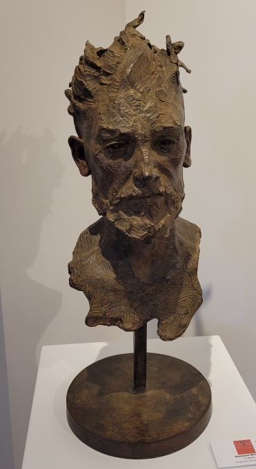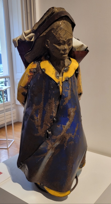 L'Indienne, Sculpture en bronze et fer, 51*39*26 et Sherpani, Sculpture en bronze et fer Barbichette, Chapeau de paille et Coiffe, Huile sur cuivre, 30*24