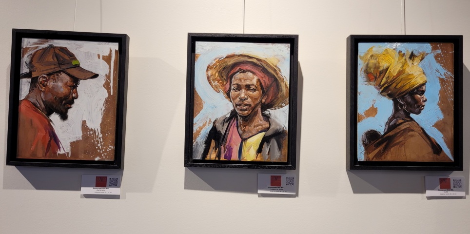 Emmanuel MICHEL, Prince du Lesotho, Huile et acrylique sur toile, 140*160 Emmanuel MICHEL, Riposte, Sculpture en bronze, 86*68 Emmanuel MICHEL, Butha Buthe (Afrique australe), Acrylique sur toile, 130*130 Emmanuel MICHEL, Punto de venta, Huile et acrylique sur toile, 173*150 Josi, Huile et acrylique sur toile, 150*150 Femme Tswana, Huile et acrylique sur toile, 162*97