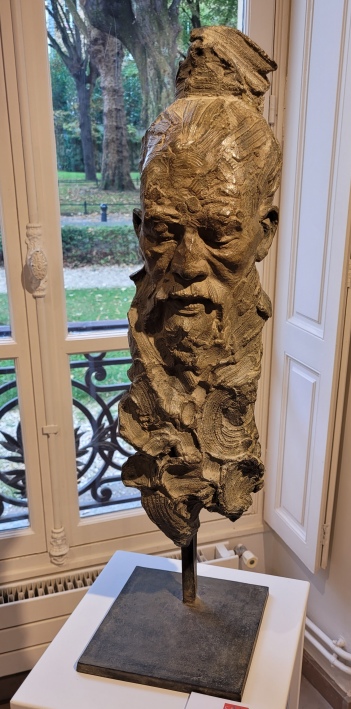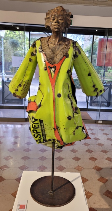 Grand Sadhû, Sculpture en bronze, 72*20*20 et Messagère verte, Sculpture en bronze et fer, 98*47*57