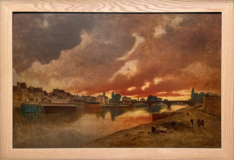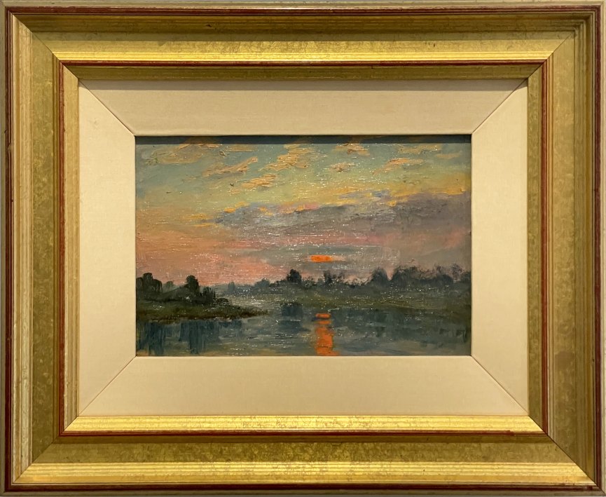 Léo GAUSSON, Coucher de soleil sur la Marne à Lagny, Huile sur carton, 1894