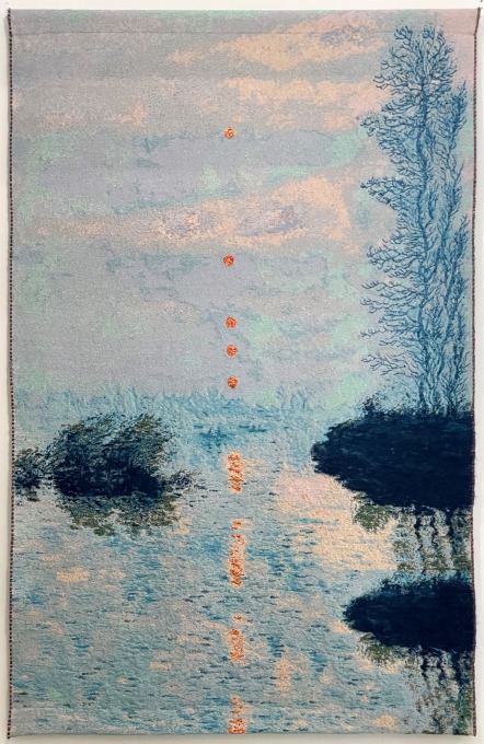 Laurence AËGARTER, Soleils couchants sur la Seine à Lavacourt, Tapisserie Jacquard en fils mixtes dont mohair et lurex, 2022
