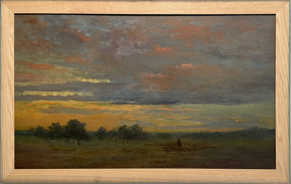 Théodore LEBEUFFE, Coucher de soleil sur la Marne à Lagny, Huile sur bois
