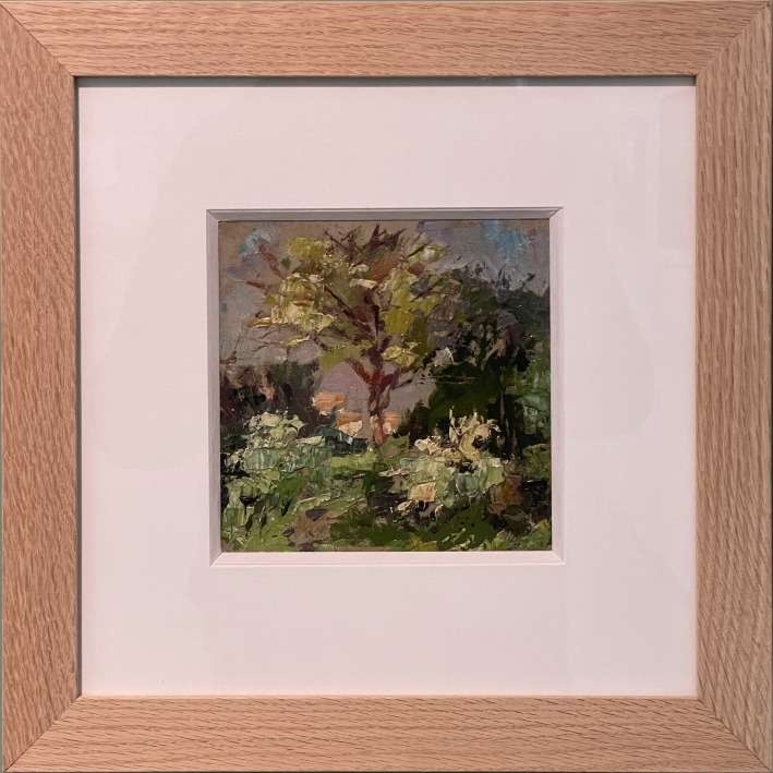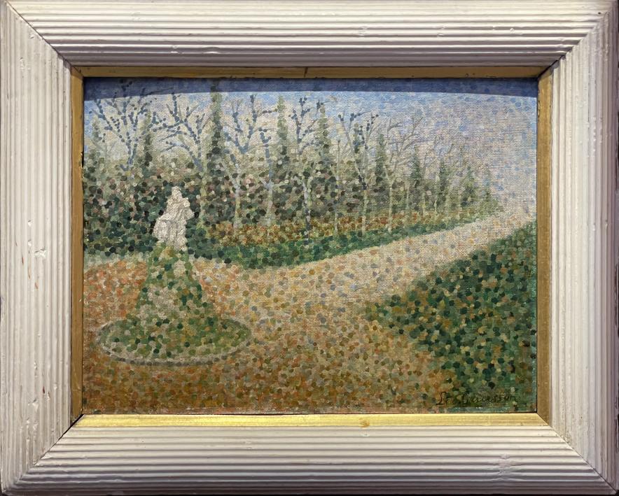Léo GAUSSON, Statue dans un parc, Huile sur carton toilé