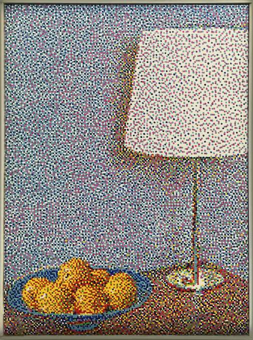 Thomas ANDREA BARBEY, Lampe et oranges, Tempera à l'huile sur toile, 2025