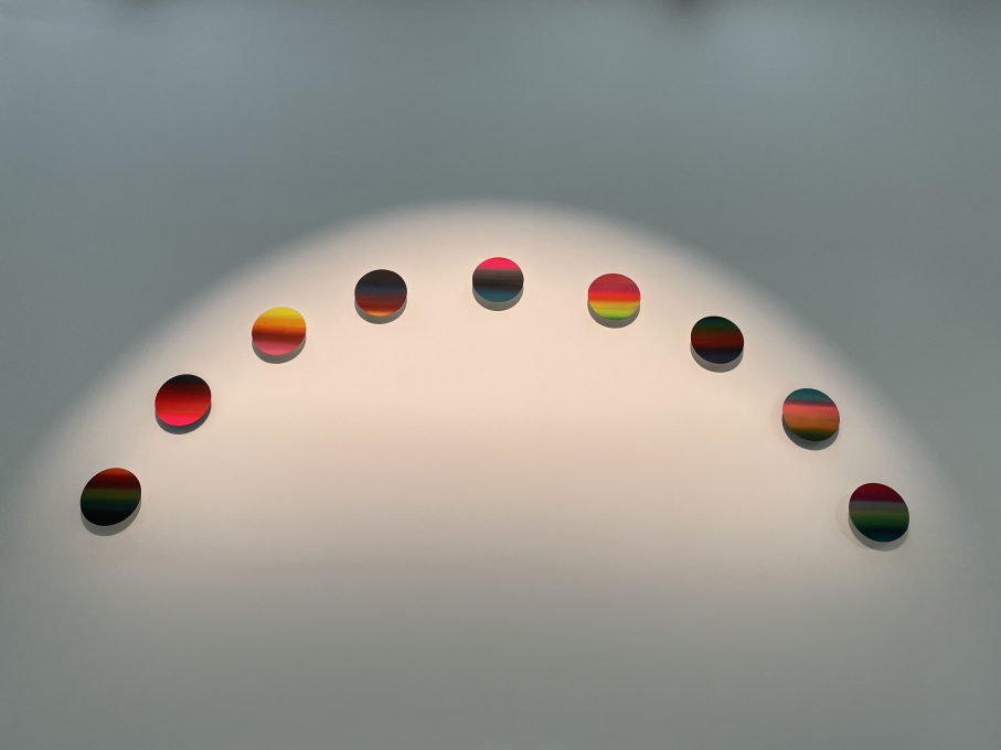 Chloé POIZAT, Nouvelles fictions, 9 couchers de soleil, Acrylique sur papier contrecollé sur carton, métal, aimants, 2015-2017