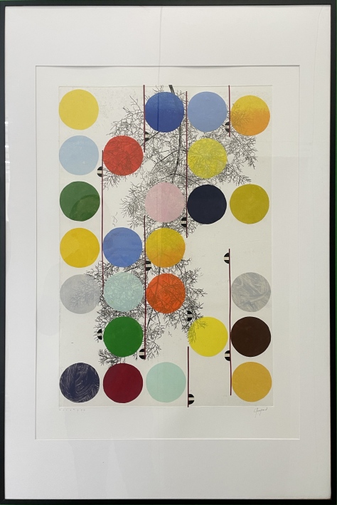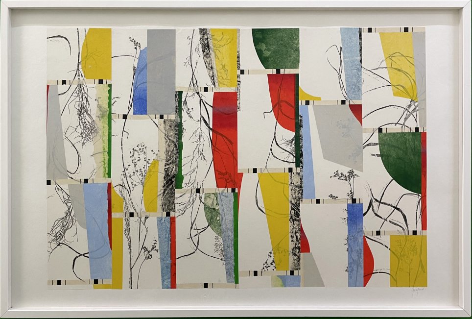 Anne GOUJAUD, La Nature géométrique, Monotype. Papier japon encré appliqué sur une impression végétale