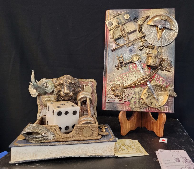 Séverine LORTEAU, Sophie, Papier mâché, P'tit nichoir 2, P'tit nichoir 3, et P'tit nichoir 1, Papier mâché/partitions/confettis