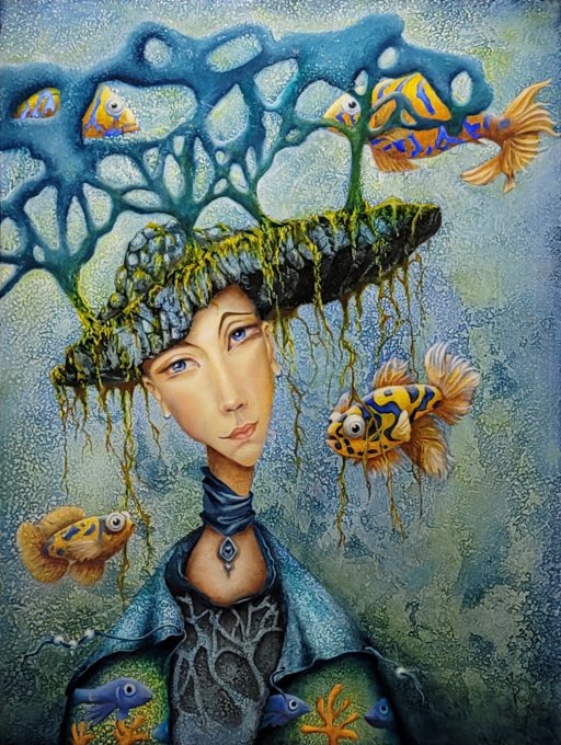 Roxane CARLU, Mélancolie marine, Huile sur bois