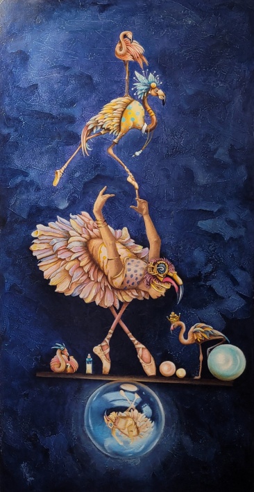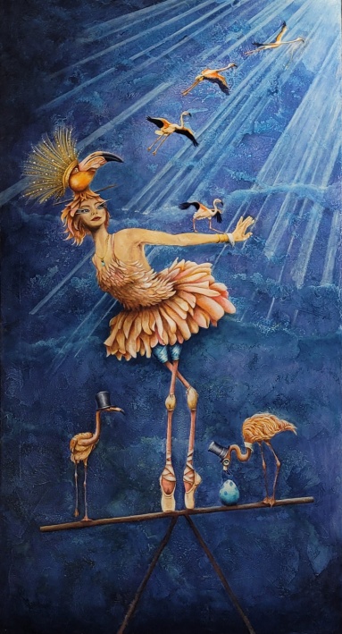 Roxane CARLU, Danseuse au flamant rose 1 et 2, Huile sur bois