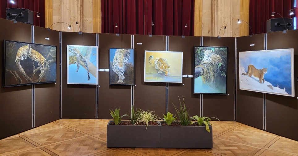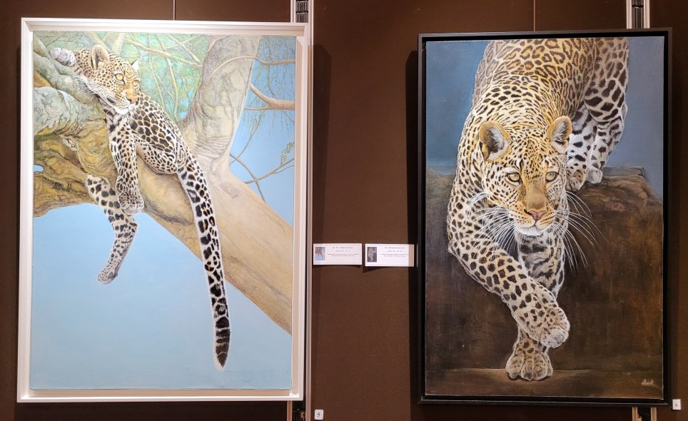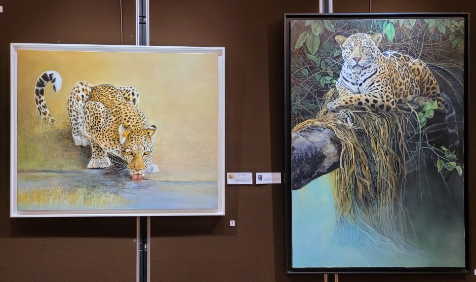 Danielle BECK, Panthère de Xini-Botswana, Huile sur toile, 97*146 et Jaguar du Pantanal, Huile sur toile, 130*89