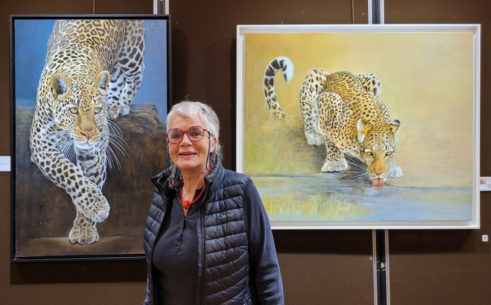 Danielle BECK, Panthère du Botswana, Huile sur toile, 100*73 et Zawadi au Kenya, Huile sur toile, 100*65