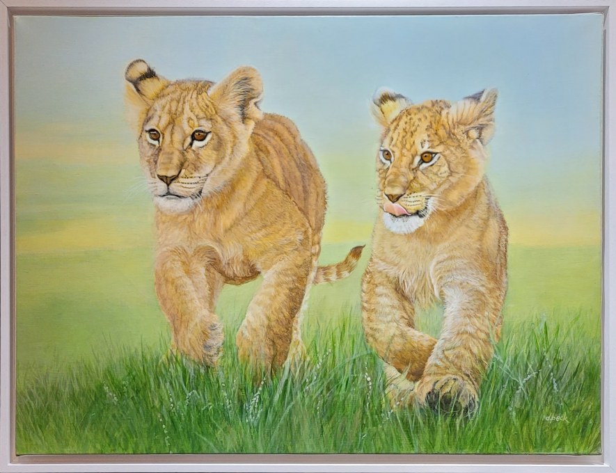 Danielle BECK, Deux lionceaux - Masaï Mara, Huile sur toile, 54*73