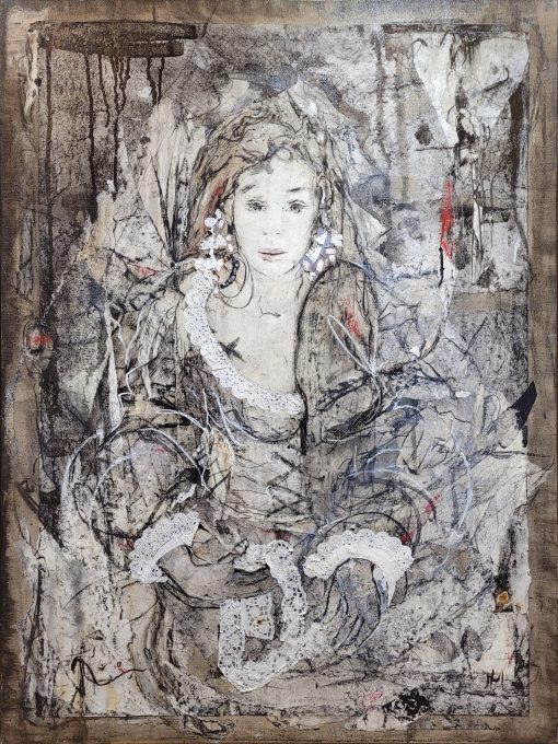 Rini FERHI, La dentellière, Fusain et encre (Médaille de Bronze)